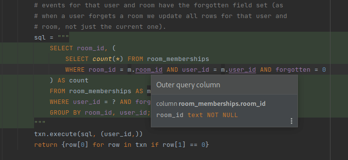 In particular, the DataGrip functionality in IntelliJ's products seems to only consider files called *.sql when defining a schema from DDL; *.sql.postgres will be ignored. To get around this we symlink those files to ones ending in .sql. We've chosen to ignore the .sql.sqlite schema dumps here, as they're not intended for production use (and are much quicker to test against).