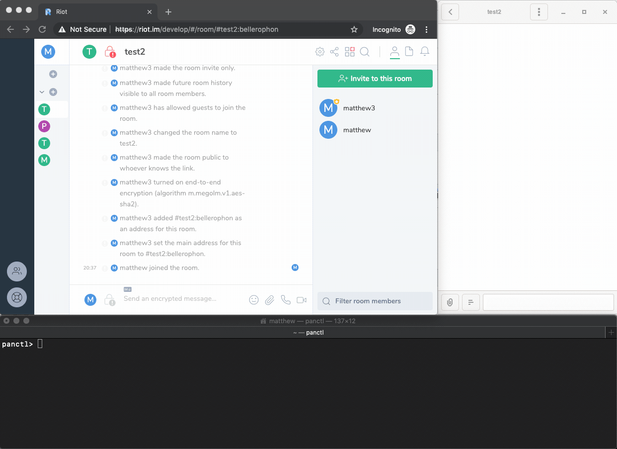 Pantalaimon is an end-to-end encryption aware Matrix reverse proxy daemon. Pantalaimon acts as a good man in the middle that handles the encryption for you.